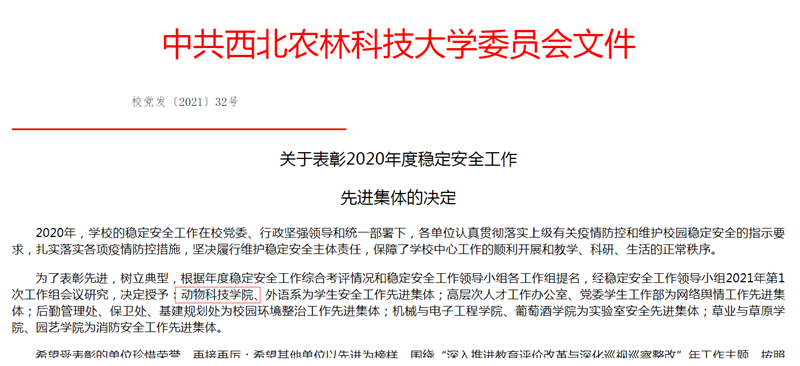 2021年,动科学院将秉承着“安全第一,防控为先”的工作理念,继续将学生安全稳定工作作为重点工作,为每一名学生的安全保驾护航。