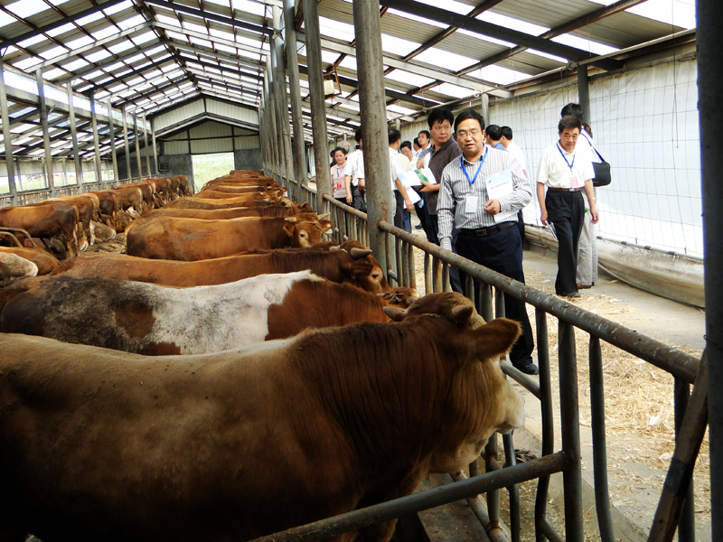 8月25~26日,动科学院副院长兼国家肉牛改良中心主任昝林森教授应邀出席了在黑龙江穆棱市举办的“第二届穆棱牛业博览会暨中国肉牛品种改良高层论坛”,并作了“开发奶公犊资源,强化现代肉牛、奶牛产业体系建设”的主题报告。在报告中,昝林森教授主要从我国养牛业生产现状、存在问题、奶牛公犊利用的理论依据、现代肉牛与奶牛产业体系建设的必要性、肉牛业与奶牛业和谐发展的对策措施等九个方面进行了重点阐述。中国农大张沅教授、国务院农村发展研究中心潘耀国研究员、北京农林科学院蒋洪茂研究员等专家也分别在大会上做了主题报告。在大会互动讨论活动中,昝林森教授与农业部贾幼陵总经济师、中国农大李胜利教授、北京农林科学院蒋洪茂研究员等专家还应邀和与会的养殖企业和农户代表进行热烈的互动交流,回答了与会代表提出的当前肉牛生产中存在的实际问题。专家学者清新的学术观点和独到的问题剖析受到了与会代表的一致好评。 会议期间,昝林森教授和其他与会领导和专家在实地考察调研了江麒源泉牧业有限公司繁育的“日本和牛”、穆棱镇柳毛河村的“弗莱维赫杂交后代”、福兴肉用种牛繁育场的“西门塔尔牛基础母牛”以及龙江皓月肉牛屠宰加工厂等肉牛养殖加工基地后,还应邀出席了“穆棱市肉牛产业发展专家恳谈会”,并就当地肉牛改良的技术路线和产业发展方向等进行了针对性地解答。 此次会议由中国林牧渔业经济学会主办,牡丹江市人民政府和穆棱市人民政府承办。会议的主题是:“加快肉牛品种改良、推进产业健康发展”。农业部总经济师贾幼陵,国家发改委农经司副司长胡恒洋,中国社科院农经所所长、中国林牧渔业经济学会会长张晓山,黑龙江省畜牧局局长孙文志,牡丹江市副市长梁桥,穆棱市委书记赵连钧、市长李大义等领导出席开幕式并讲话,会议由中国林牧渔业经济学会副会长兼秘书长林祥金研究员主持。 会议现场
