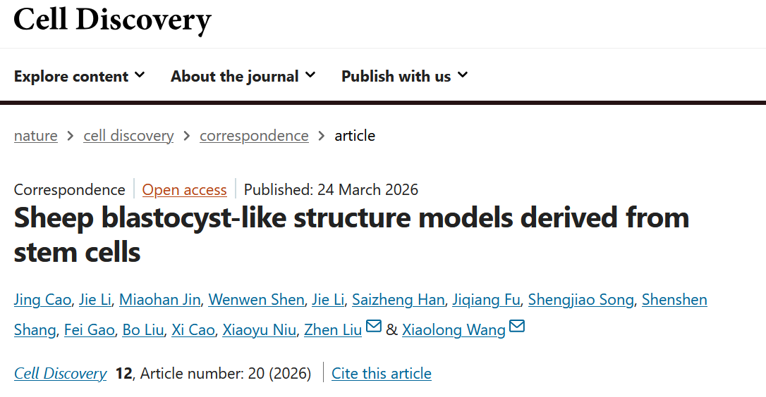 近日,羊遗传改良与生物育种创新团队联合中国科学院脑科学与智能技术卓越创新中心刘真研究员团队,在《Cell Discovery》发表题为“Sheep blastocyst-like structure models derived from stem cells”的研究论文。该研究首次利用绵羊的胚胎干细胞构与滋养层干细胞,成功构建了绵羊类囊胚模型,所获得的类囊胚在形态学、分子特征及细胞谱系组成上高度类似天然囊胚,并通过体外培养进一步验证了其生长的潜能。