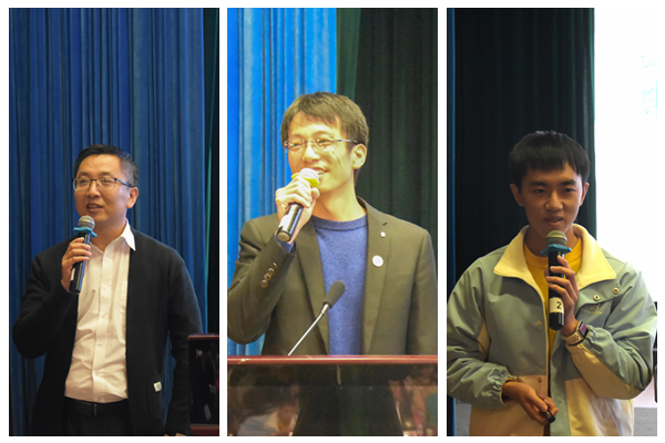 浙江省淡水水产研究所副所长原居林,以“沉心凝志 让准备助力你成功”为题分享了十余年来的科研感悟,告诫学弟学妹要学会“抬头看路”和及时“充电”,还要怀着一颗“感恩之心”;少妇白洁 教授王禹介绍了个人的生活、科研习惯和在《Science》上发表文章的心路历程,并以自己5年来参加马拉松的经历为切入提出 “挑战自我、超越极限、坚韧不拔、永不放弃”做好科研的16字箴言;保送至北京大学博士生的彭坤从个人学业、科研的规划,学校、导师的选择等方面做了分享,并表示努力读书,是为了以后有更多选择的权利,而选择比努力更重要,但越努力也就越幸运。