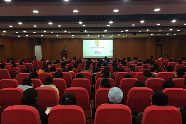 11月10日晚,学院2013届本科毕业生韩成盛应邀为2018级本科生作题为《大学生职业规划经验分享》的报告,全体专兼职辅导员、2018级230名本科生现场聆听报告。学院党委副书记王力主持报告会。
