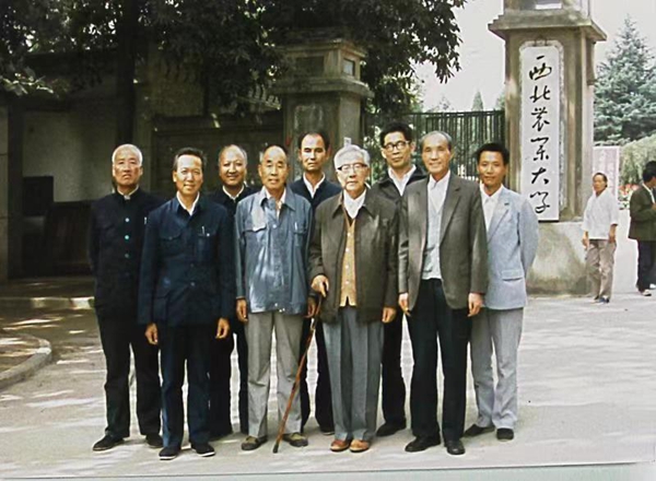 1988年,千阳县同志前往西农大看望刘教授团队时合影。前排左三为刘荫武教授,后排左一为千阳县畜牧局局长李春霖、左三为千阳县种羊场场长赵杰、右一为县畜牧局副局长王宝民