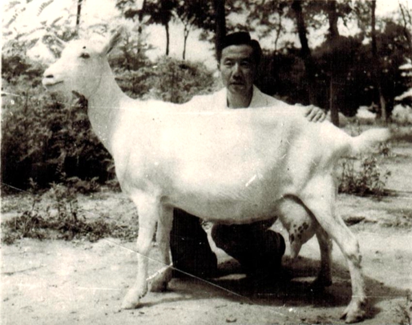 在茅草苫顶、泥泞满地的羊圈,看到一群活蹦乱跳的奶山羊。刘荫武呆呆地站在那里,默默地看着这群羊,良久,他忽然蹲下身子,紧紧抱住一只羊的脖子,久久不松开。这时人们看到,刘教授已经泪流满面,激动难抑。原来,这群羊是刘荫武教授花费几十年心血培育出来的西农莎能奶山羊。是20世纪三十年代初,由晏阳初先生从美国引进,抗日战争后从河北定县辗转落户西农畜牧场。