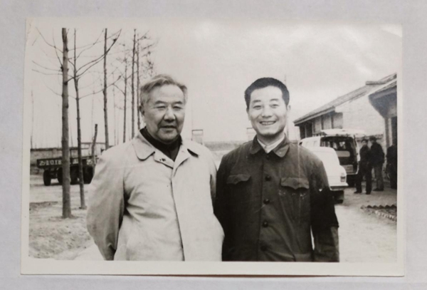 1986年,刘荫武教授(左)在千阳县种羊场考察工作时与本文作者边江合影  邓志发摄